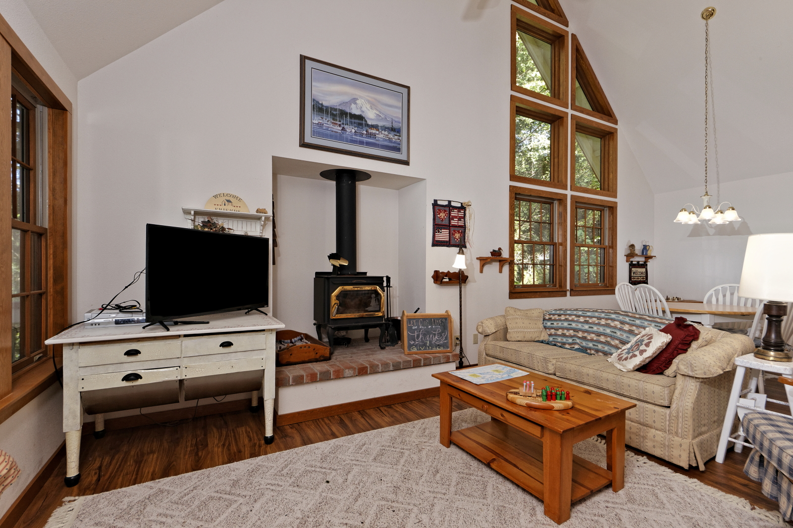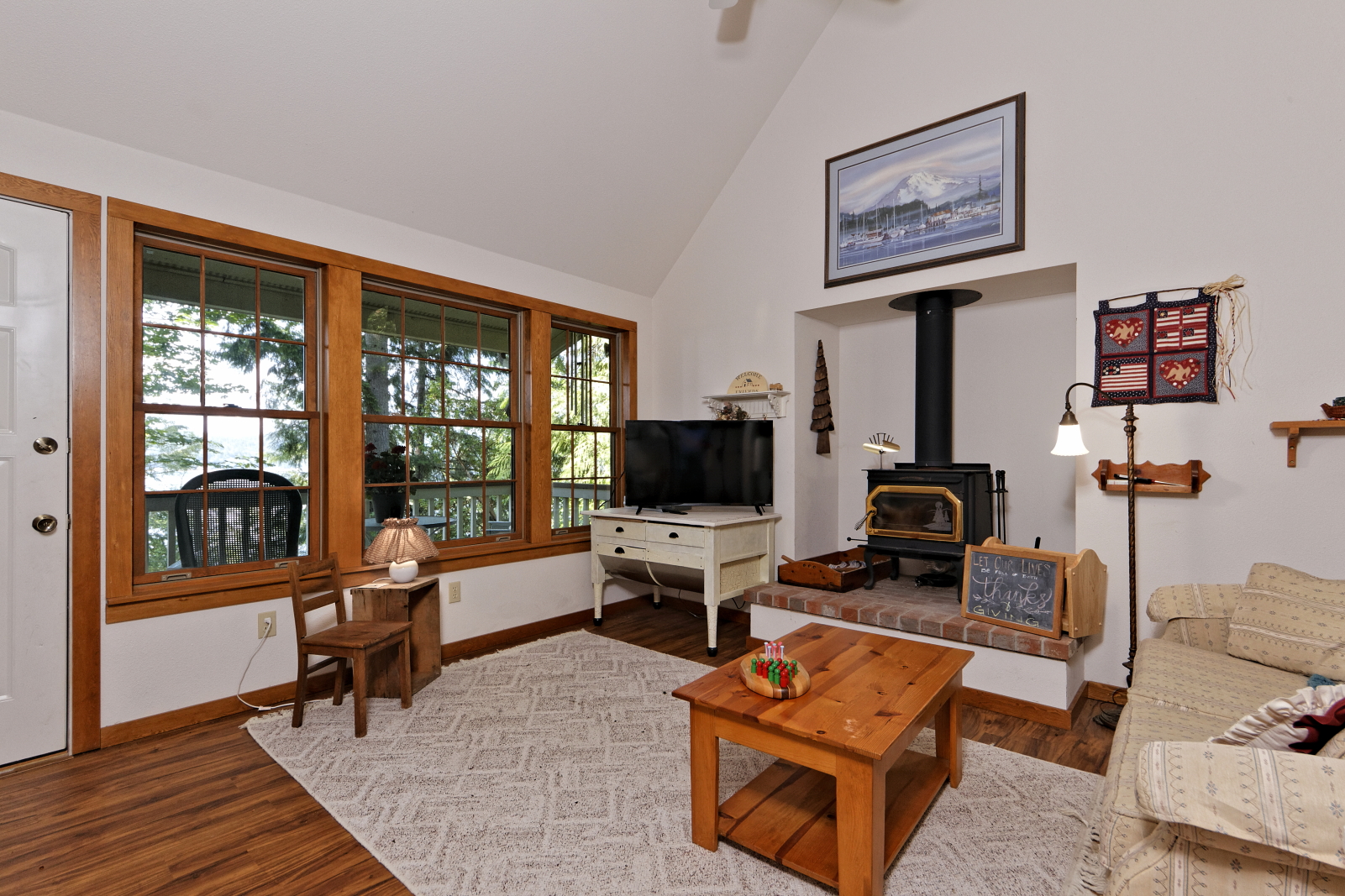 Built in 1995, in Twanoh Tides, the gently lived in home, lives large with its open concept floor plan and soaring vaulted ceilings. Engineered laminate flooring flows throughout the main living area. Custom accents such as the re-purposed old Snohomish Schoolhouse railing leading to upstairs brings a special character to the home along with the solid wood doors with glass knobs, a user friendly kitchen with breakfast bar and custom Knotty Alder cabinetry, and double hung wood wrapped cross buck windows.